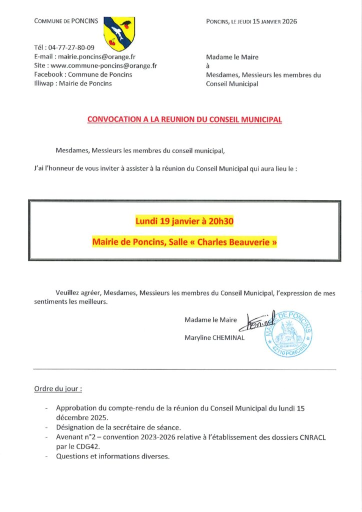 Lundi 19 janvier à 20h30 à la Mairie